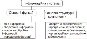 Під інформаційною системою розуміється організаційна сукупність технічних засобів, технологічних процесів і кадрів, що реалізують функції збору, обробки, зберігання, пошуку, видачі й передачі інформації.