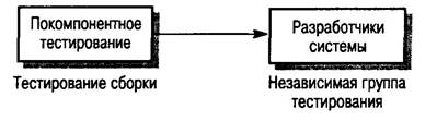 Общая схема процесса тестирования начинается с тестирования отдельных программных модулей, например процедур и объектов. Затем модули компонуются в подсистемы и потом в систему, при этом проводится тестирование взаимодействий между модулями. Наконец, после сборки системы, заказчик может провести серию приемочных тестов, во время которых проверяется соответствие системы ее спецификации [1].