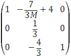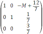 | W | 1 | -40/7 | 0 | 0 | 0 | -12/7 | -7/3M+4 | -M+12/7 | 48/7 |