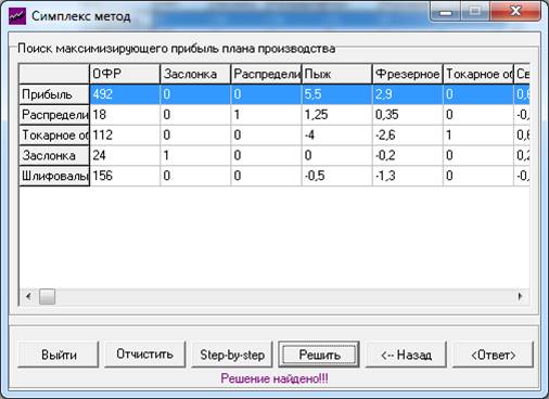 Рисунок 3.2 - Поиск максимизирующего прибыль плана производства
