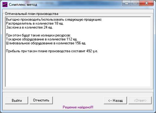 • поиск оптимального плана и экстремума нецелочисленной задачи линейного программирования;