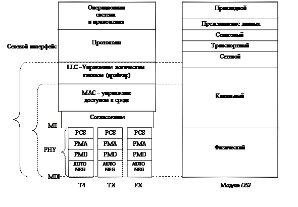 Рис. 1.2. Структура физического уровня Fast Ethernet