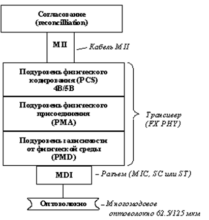 Структура физического уровня 100Base-FX представлена на рис.1.4.