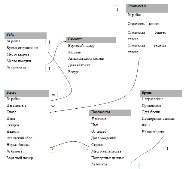- 8 таблиц (Структура таблицы «Билет» указан в Приложении №1).