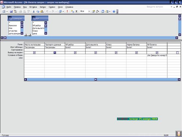 Структура запроса «№ билета запрос»