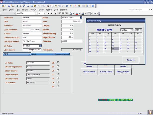 Целью этой работы является создать базу данных в СУБД ACCESS. Которая должна будет автоматизировать работу служащих аэропорта.