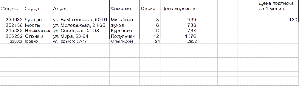 | данные для расчёта |