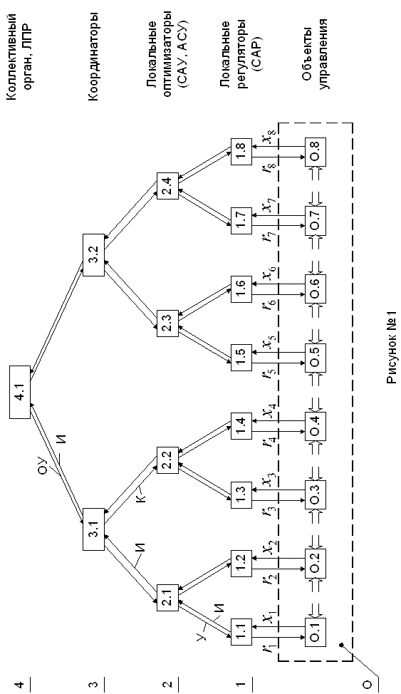 О — объект управления, который тоже является сложным, например, состоящим из восьми подсистем О.1 – О.8.