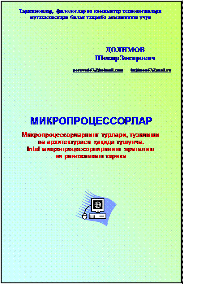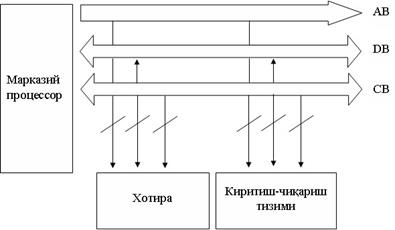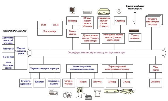 [2] Изоҳ : Рисола давомида бугунги кунда кенг тарқалган IBM PC русумли ва шунга ўхшаш компьютерларнинг тузилиши мисол тариқасида кўриб борилади.