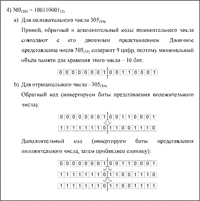 4. Запишите прямой, обратный и дополнительный код числа, интерпретируя его как восьмибитовое целое без знака и со знаком.