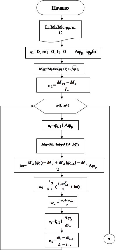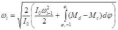 Начальные параметры движения в положении i=1 считаются известными и равными φ1=0, ω1=0, t1=0. Начальное ускорение ε 1 определяется из закона Ньютона