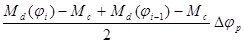 равна площади, ограниченной кривой M=Md-Mc, осью абсцисс и прямыми х=φi и х=φi-1. Эту площадь с некоторой погрешностью можно считать равной площади трапеции и вычислить по формуле: