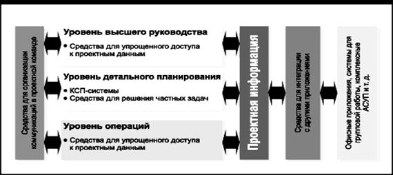 -средства для упрощенного доступа к проектным данным; средства для организации коммуникаций; средства для интеграции с другими приложениями.