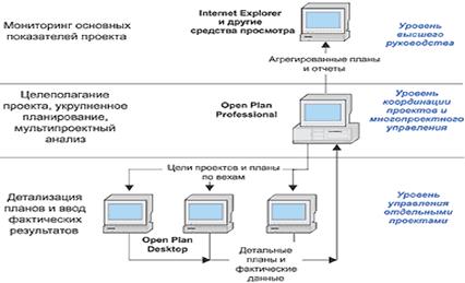 Использование профессиональной и настольной версии Open Plan на разных уровнях управления в организации