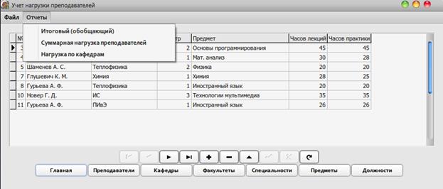 Приложение, работающее с базой данных учета нагрузки преподавателей: