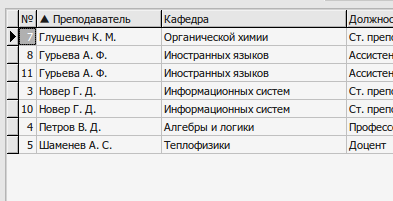 Рис.4. Сортировка по столбцу «Преподаватель»