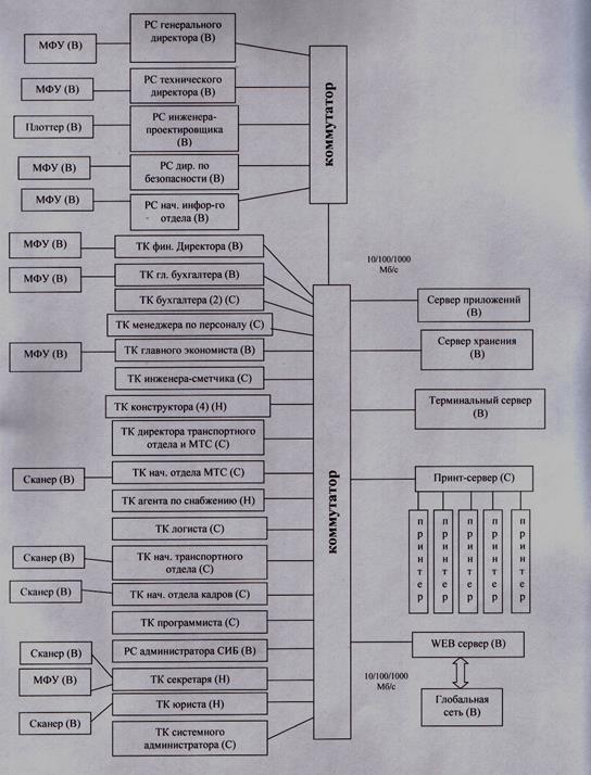 7. Предложения по структуре СИБ и размещению её элементов в ЛВС АПКУ организации. Схема ЛВС организации с предлагаемыми элементами СИБ