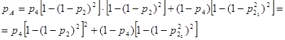 Элементы 2, 3, 4, 5 и 6 образуют мостиковую схему. Заменяем эти элементы на элемент A . Вероятность безотказной работы элемента A определяется по теореме разложения: