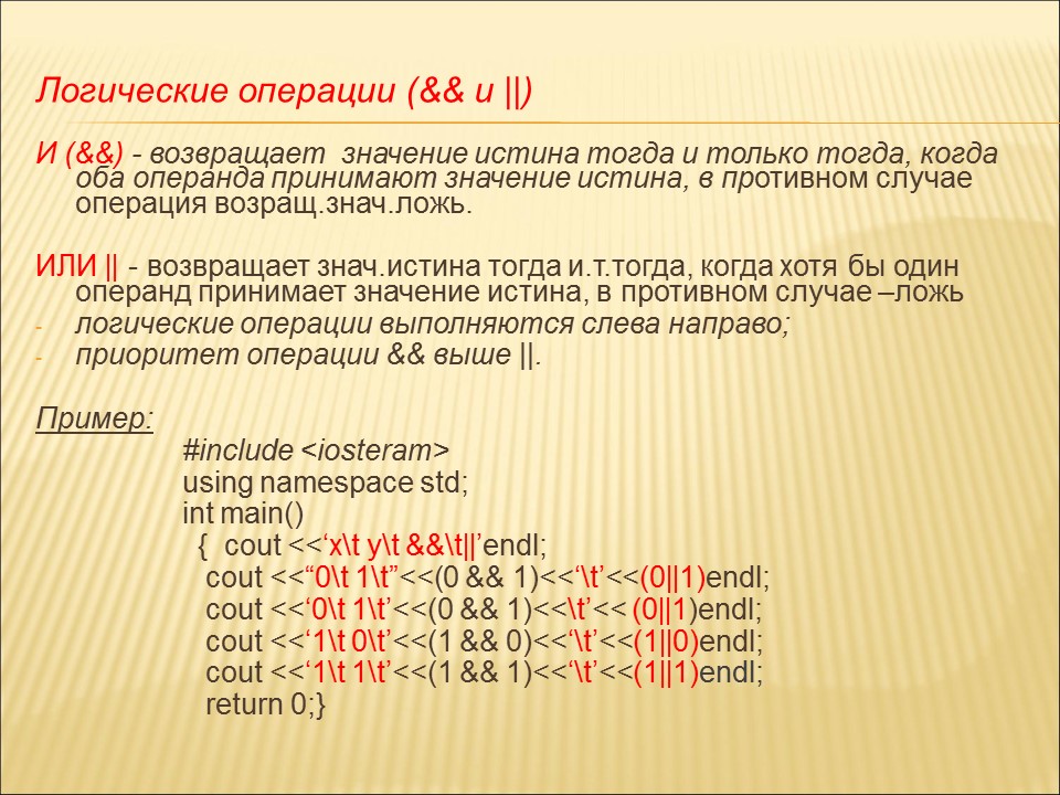 Ò Логический тип – bool , принимающий значения (true-истина, false-ложь);