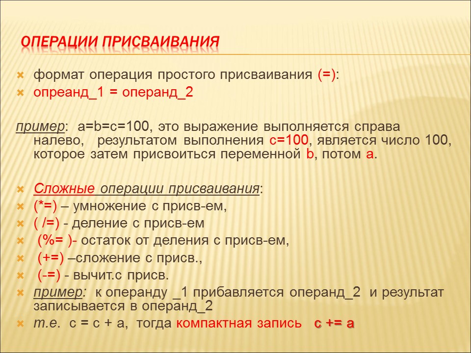 Ò Операции увеличения (декремента) и уменьшения (инкремента)