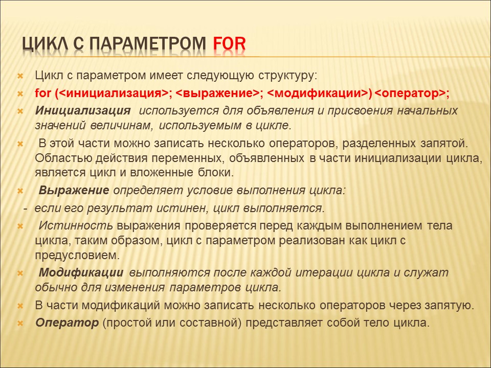 Ò for (int i=0;i<n; ++i) //обработка элементов массива