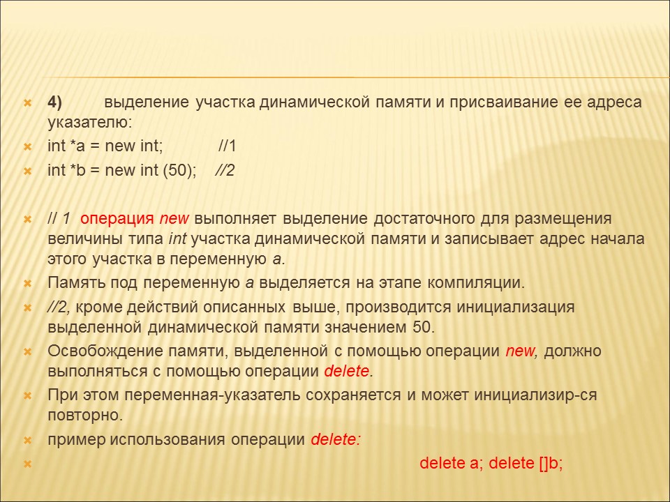 Ò for (int i=0;i<n; i++) delete [] a[ij; //освобождаем память, выделенную под массив delete [] a;