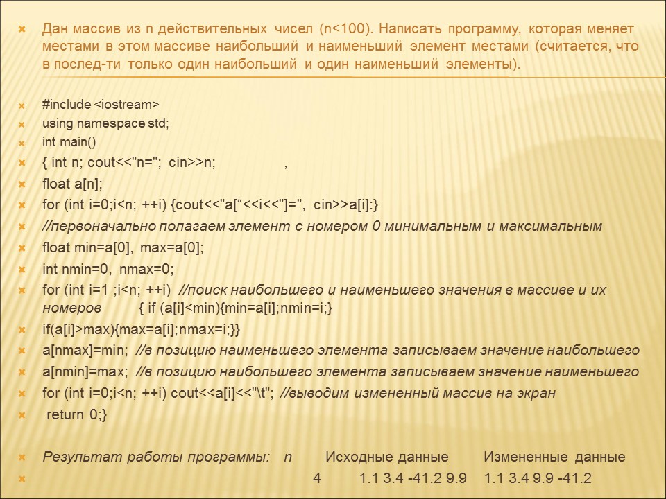 Ò a[nmin]=max; //в позицию наибольшего элемента записываем значение наименьшего