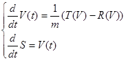 Для определения пройденного за время "разгона" пути S к этому уравнению (2) необходимо добавить уравнение dS / dt = V , являющееся определением понятия – "скорость". Математическая модель задачи записывается в виде системы из двух дифференциальных уравнений 1-го порядка, записанных в каноническом виде: