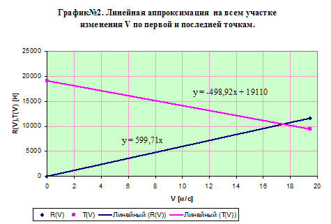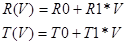 Модельная задача №1. Линейная аппроксимация исходных функций R ( V ) и T ( V ) на всём участке по первой и последней точкам.