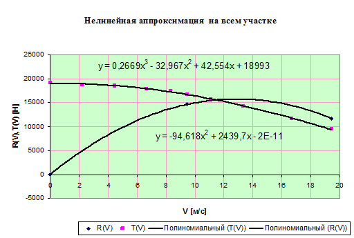 В курсовой работе исходными данными являются функции R ( V ) и T ( V ), которые представлены в графическом виде. Решением данной задачи является снятие контрольных точек с графиков ( R ( V ) – 16-20 точек и T ( V ) – 8-10 точек) включая первую и последнюю и заполнение таблиц исходных данных (расчёты производятся в системе СИ).