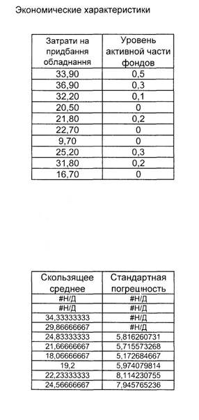 Согласно условию задачи необходимо провести анализ данных с помощью скользящего среднего из пакета и построение тренда на графике. Для выполнения данного задания в программе Ехсе l вводим имеющиеся данные (прибыль гостиницы и уровень активной части фондов). После чего входим в меню «Сервис», выбираем команду «Анализ данных» и необходимый нам тип анализа – «Скользящее среднее».
