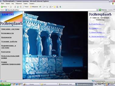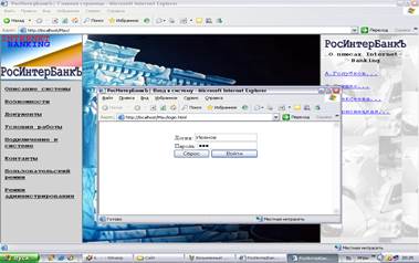 4. Спроектирована и разработана система обслуживания клиентов банка через ИНТЕРНЕТ;