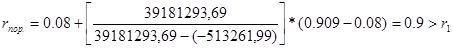 Подберем ставку дисконтирования, при которой NPV < 0: r 2 = 90,9%, NPV r 2 = - 513261,99.