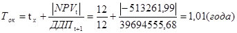 где t x – количество периодов, при которых NPV < 0; NPV t – последнее отрицательное значение NPV ; ДДП t +1 – величина ДДП в “ t +1 ”-м периоде.