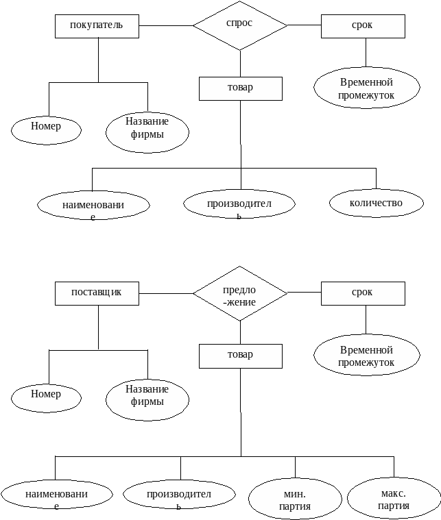 Рис.1. Концептуальная схема предметной области (спрос и предложение).