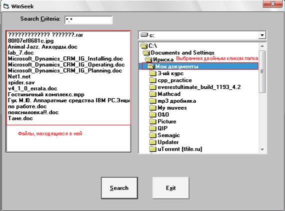 Вывод всех файлов, доступных в выбранной папке (*/.txt, *.exe, *.mp3 и т.п.);