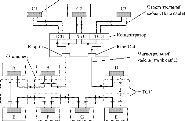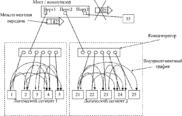 • повысить отказоустойчивость сети за счет стандартных процедур восстановления ее после отказов различного рода – повреждения кабеля, некорректной работы узла, концентратора, возникновения высокого уровня помех на линии и т. п.;