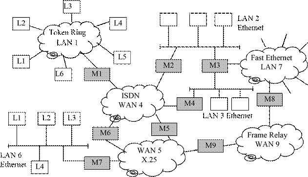 Наряду с локальными сетями существуют распределенные сети, или MAN (Metropolitan Area Net). По своей идеологии и назначению они близки к локальным, но отдельные компьютеры такой сети могут быть размещены на удаленном расстоянии и связываться специальными телефонными каналами. Распределенные сети используются, например, для связи центральных офисов или банков со своими филиалами (в том числе в других странах), в государственных информационных системах и др. Распределенная сеть, в которой организована специальная коммуникационная система обмена сообщениями (электронная почта, факс, совместная работа над документами), называется корпоративной. (10-ки, 100-ни км, в пределах мах - страны)