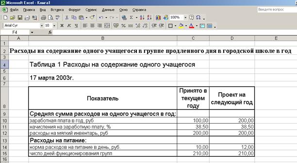 Таблица 2 Расходы на содержание одного учащегося в группе продленного дня в городской школе в год