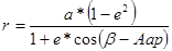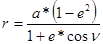 Розміри і форму орбіти визначають за рівнянням орбіти в полярних координатах