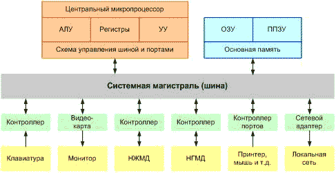 Схема управления прямым доступом к памяти служит для временного отключения процессора от внешних шин и приостановки работы процессора на время предоставления прямого доступа запросившему его устройству.