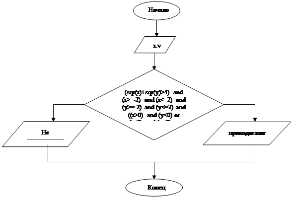 Составить программу, проверяющую принадлежность точки с координатами (х, у) заштрихованной области.