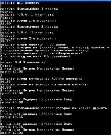 writeln (i,’ ’,'машинист ',a [i]. fio,' ','Направление ',a [i]. Nap);