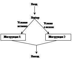 Если условие в скобках принимает истинное значение, выполняется инструкция1, а если ложное – инструкция2 (см. рис. 1).