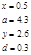 x=0,5 a=4,3 y=2,6 d=0,3 |
