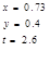 x=0,73 y=0,4 t=2,6 |