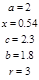 a=2 x=0,54 c=2,3 b=1,8 R=3 |