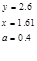 y=2,6 x=1,6 a=0,4 |