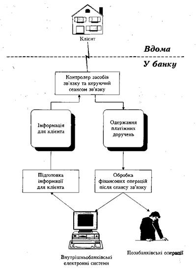 "Домашній банк" може функціонувати у пасивному (консультативному) або у діалоговому режимі. У консультативному режимі ця система дозволяє тільки читати інформацію. Для цього може використовуватись радіотрансляційна або телефонна мережа чи кабельний зв'язок. У діалоговому режимі вона забезпечує обмін розпорядженнями і запитами між абонентами та центром зв'язку. З цією метою можна використовувати телефонний або кабельний зв'язок. "Домашній банк", що працює в діалоговому режимі, в основному пропонує абоненту інформаційні послуги, тобто клієнт може отримати довідку про стан свого рахунку, про останні трансакції, про вартість портфеля цінних паперів. Через "домашній банк" можна замовити чекову книжку, а у найближчому майбутньому, якщо фінансові організації матимуть відповідне програмне забезпечення, можна буде виконувати всі класичні банківські операції після ідентифікації клієнта і перевірки його секретного коду за допомогою картки з мікропроцесором, для чого потрібно встановити вдома читаючий прилад для карток. Одночасно з дистанційною оплатою набуватиме поширення практика дистанційної купівлі, тобто купівлі за допомогою замовлення телефоном чи кабельним зв'язком. Зрозуміло, що експлуатація "домашнього банку" в діалоговому режимі вимагає попереднього встановлення зв'язку з банком і, як правило, внесення абонентної плати. Але для надання інших послуг можна просто користуватися відеографічним зв'язком. Можна припустити, що "домашні банки" займуть важливе місце як реальний засіб зв'язку між населенням та фінансовими установами і як матеріальний засіб платежу, частково вступивши в конкуренцію з системою дистанційної оплати.