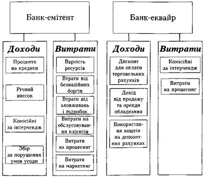 Трансакції з використанням платіжних карток відкрили нові перспективи фінансового обслуговування клієнтів і, відповідно, розширили можливості отримання банківського прибутку. Банки стягують комісійні і відсотки як з власників карток, так і з торговельників. Так, банк-еквайр одержує від торговельників дисконт для оплати торговельних рахунків, а також має можливість використовувати для своїх операцій кошти, які зберігаються торговельниками на рахунках у банку. Крім того, банк може продавати торговельнику послуги, знижуючи при цьому ставку дисконту і надаючи йому додаткові пільги.